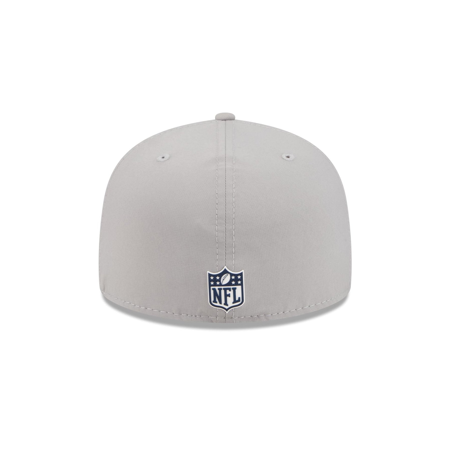 The New England Patriots 2025 Sideline Hot Weather Gray 59FIFTY Fitted Cap features a sewn-down silicone Patriots logo patch at the front panels with a matching Official NFL Shield logo at the rear. The cap has a water-repellent quill tech fabrication throughout, with a quick-dry cushioned sweatband to absorb moisture. The undervisor is accented with a silicone transfer in the team’s colors.