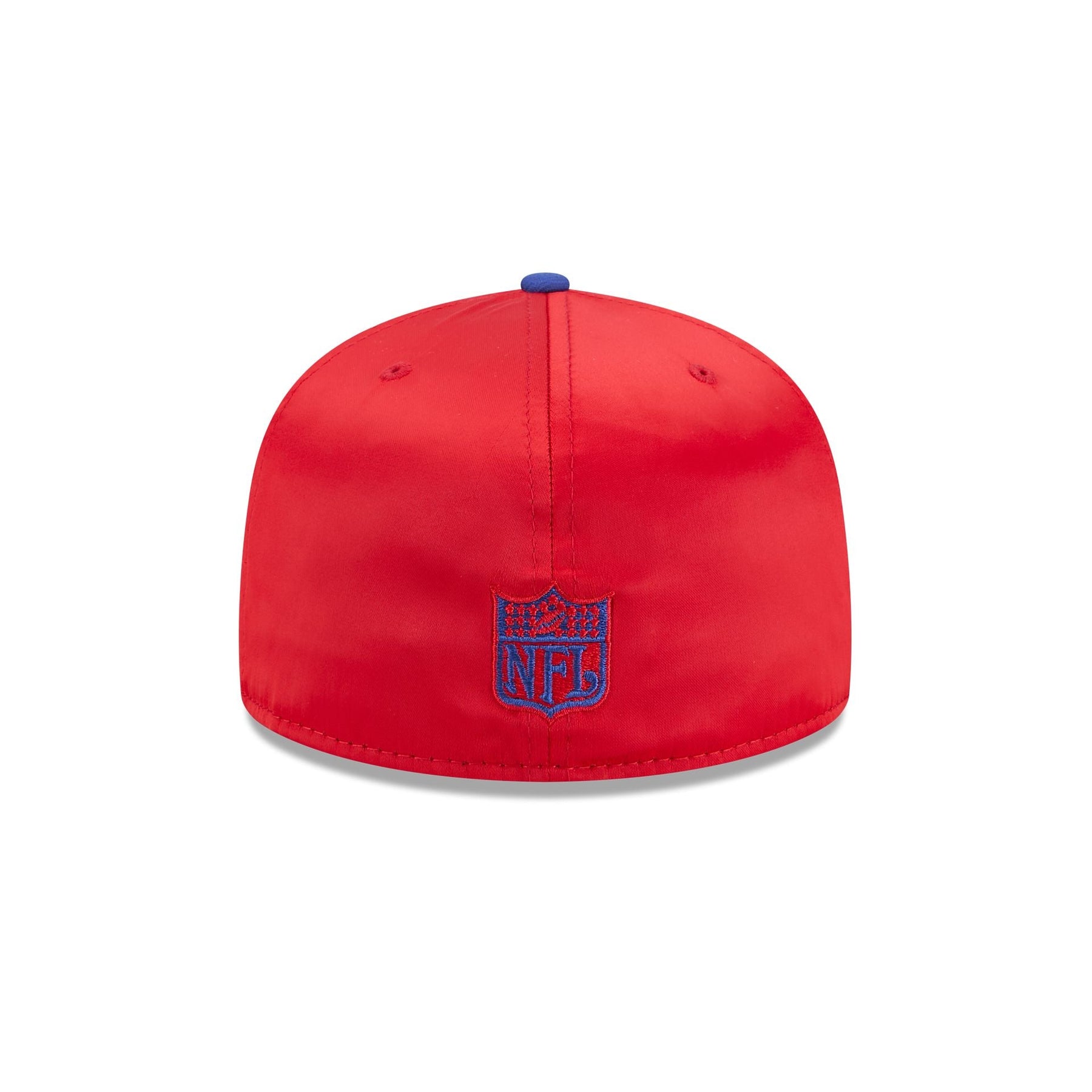 The New England Patriots Bold Satin 59FIFTY Fitted Cap features an embroidered satin Patriots Historic graphic at the front panels with a satin fabrication throughout. Additional details include a matching NFL Shield logo at the rear and a gray undervisor.