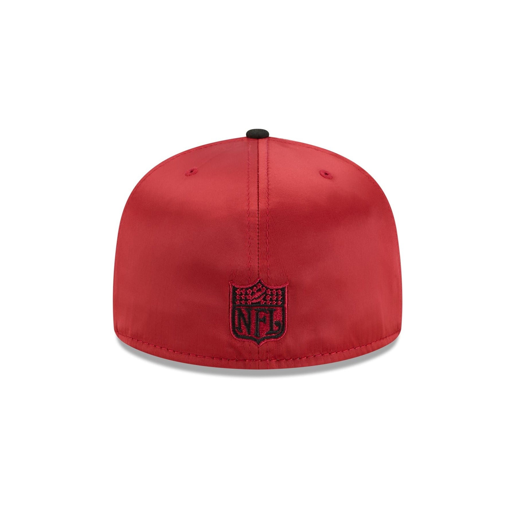 The Arizona Cardinals Bold Satin 59FIFTY Fitted Cap features an embroidered satin Cardinals Historic graphic at the front panels with a satin fabrication throughout. Additional details include a matching NFL Shield logo at the rear and a gray undervisor.