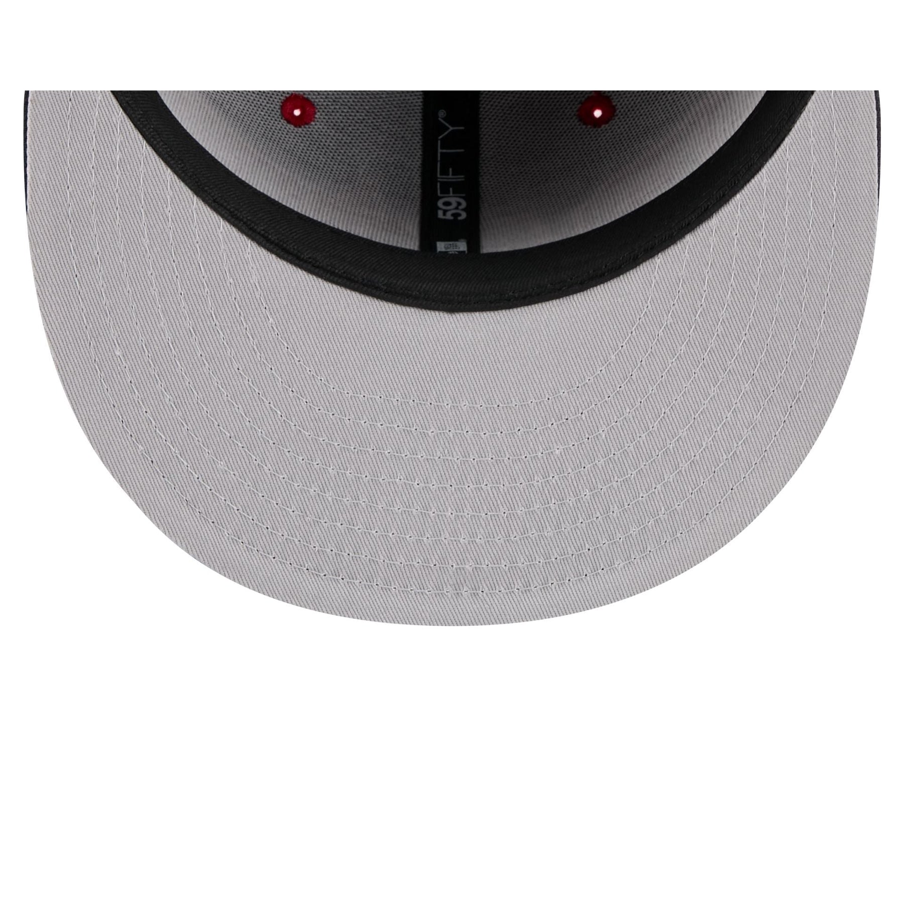 The Atlanta Braves Bold Satin 59FIFTY Fitted Cap features an embroidered satin Braves Historic graphic at the front panels with a satin fabrication throughout. Additional details include a matching MLB Batterman logo at the rear and a gray undervisor.