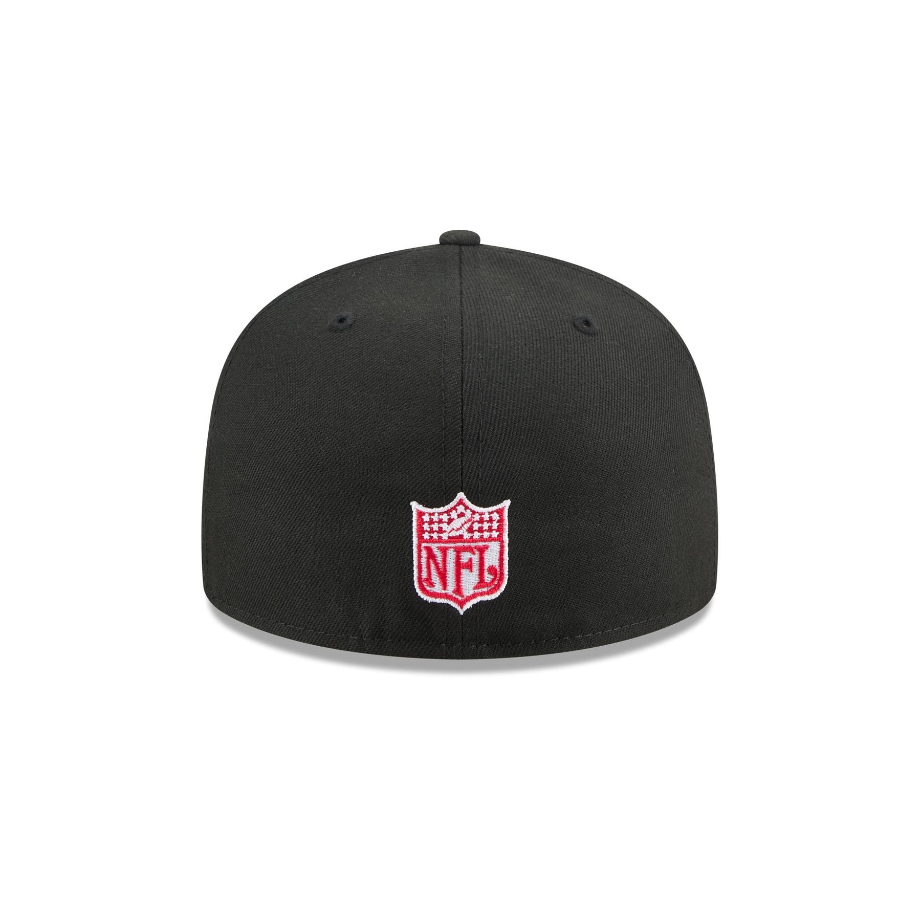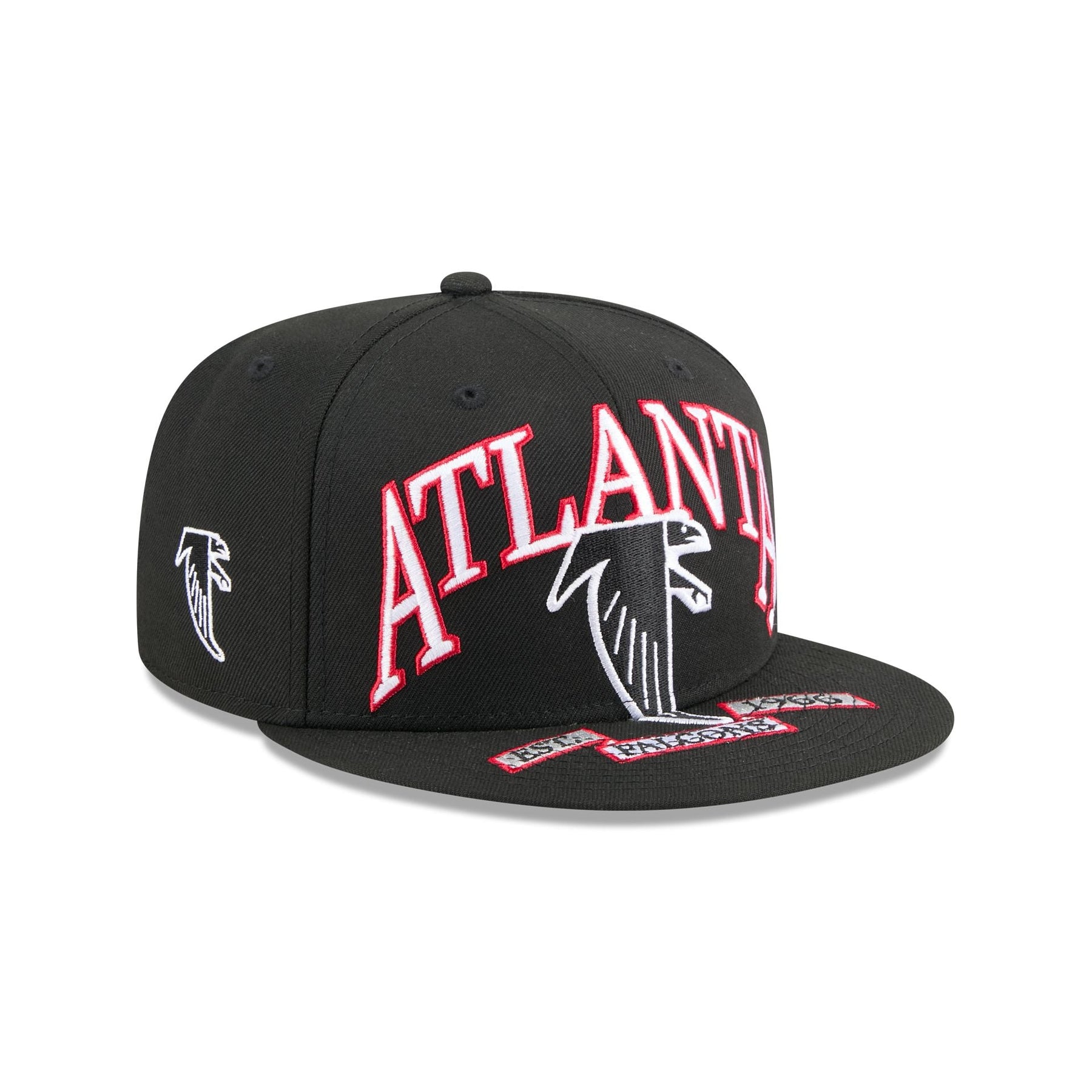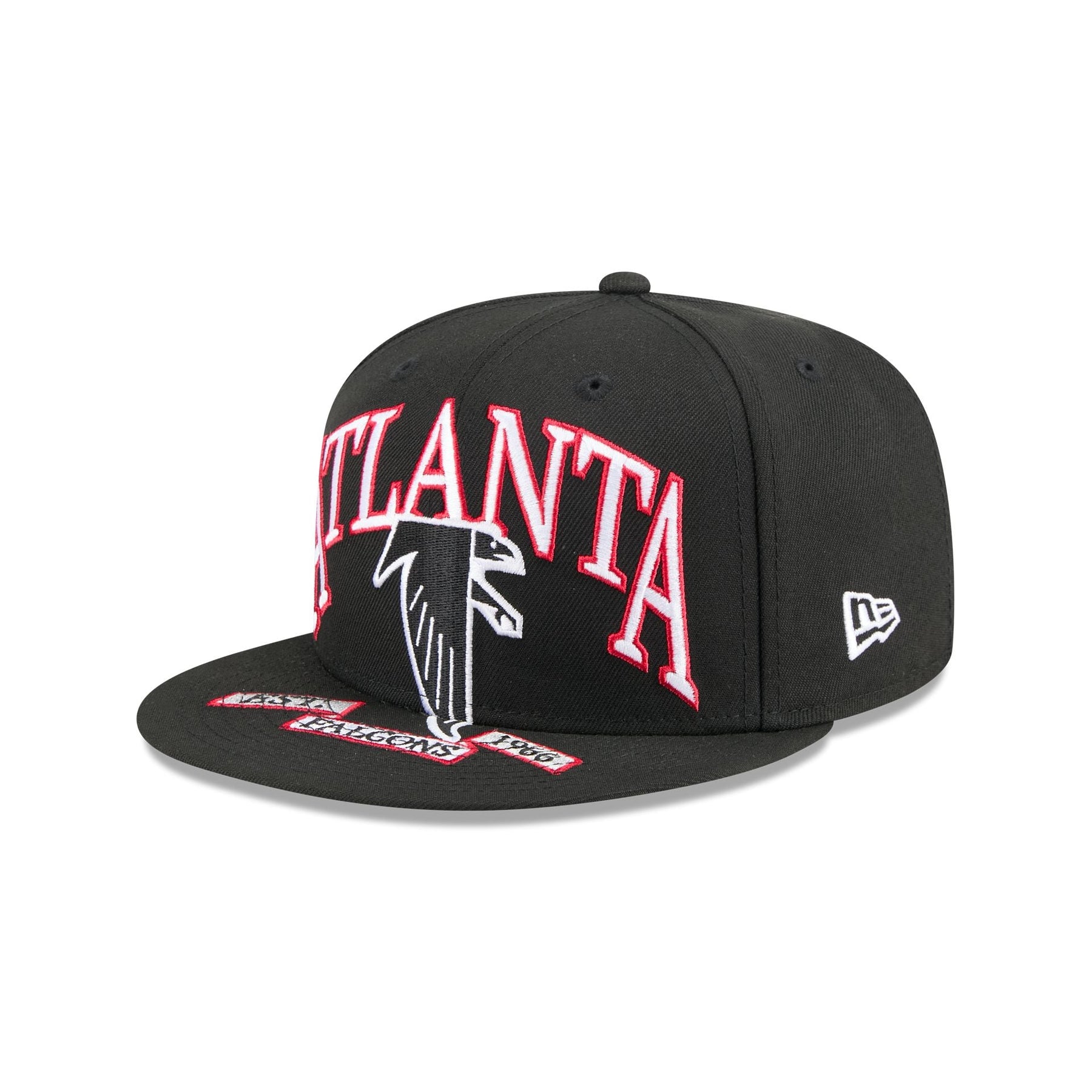 The Atlanta Falcons Oversized 59FIFTY Fitted Cap features an embroidered Falcons Historic oversized graphic at the front panels and visor. Additional details include a logo at the right-wear side, an NFL Shield logo at the rear, and a gray undervisor.