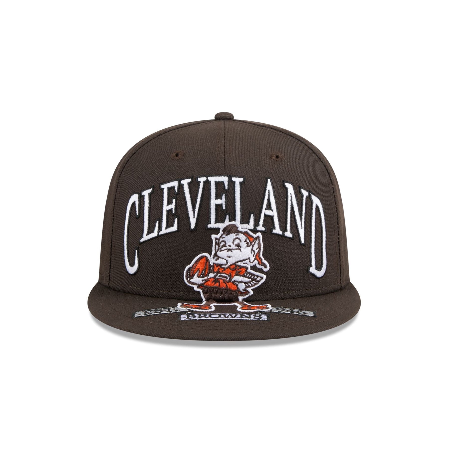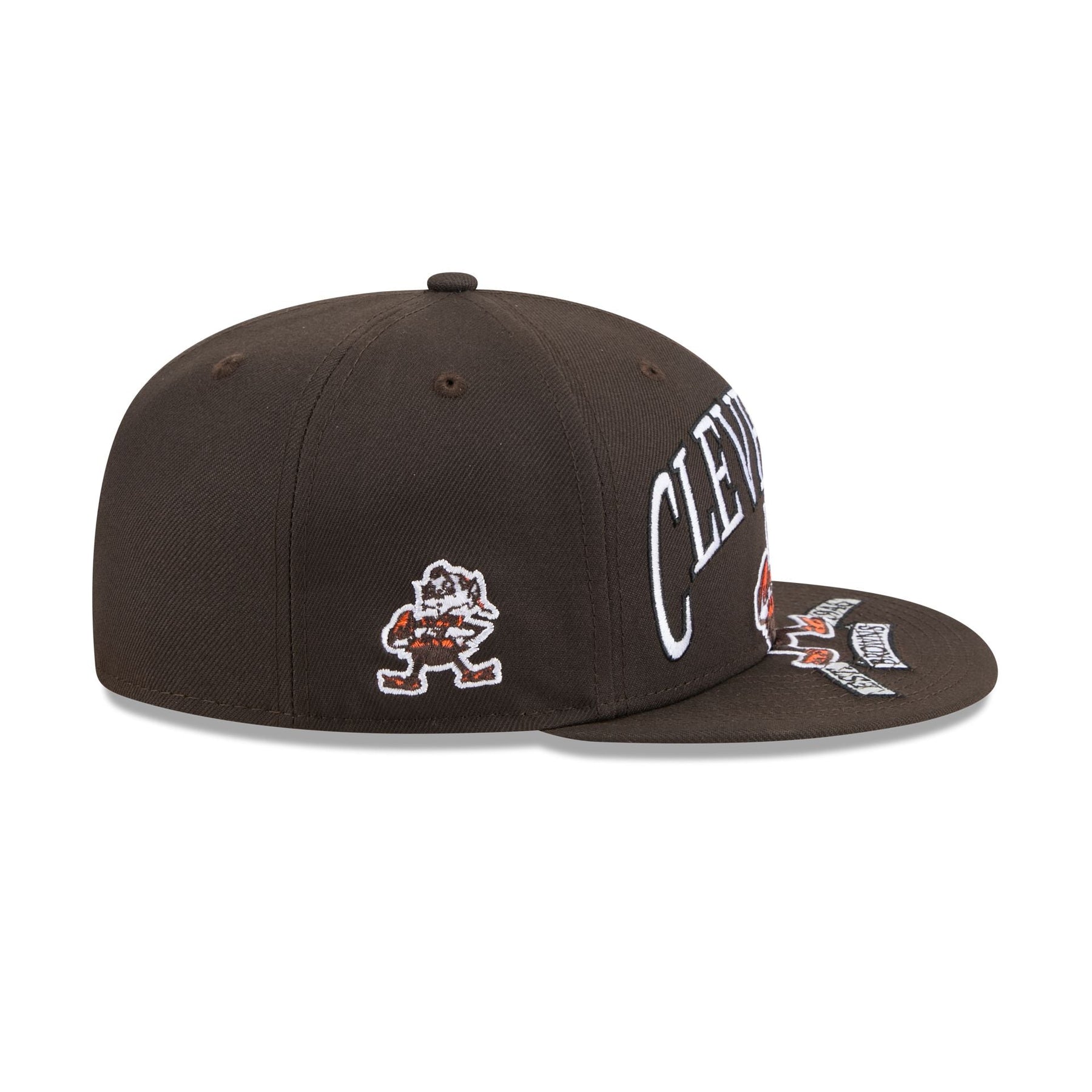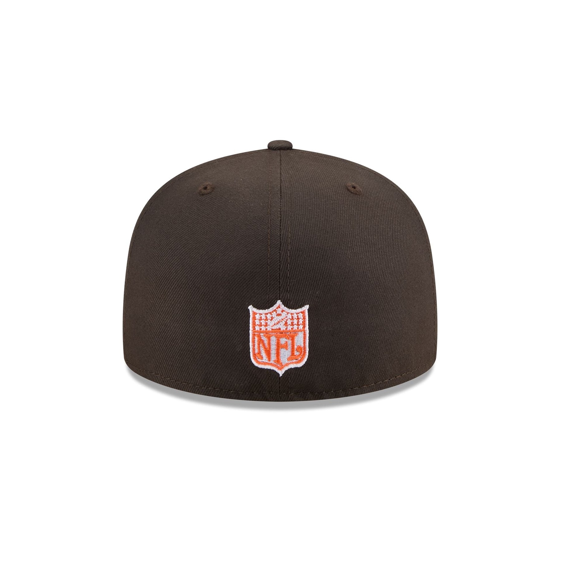 The Cleveland Browns Oversized 59FIFTY Fitted Cap features an embroidered Browns Historic oversized graphic at the front panels and visor. Additional details include a logo at the right-wear side, an NFL Shield logo at the rear, and a gray undervisor.