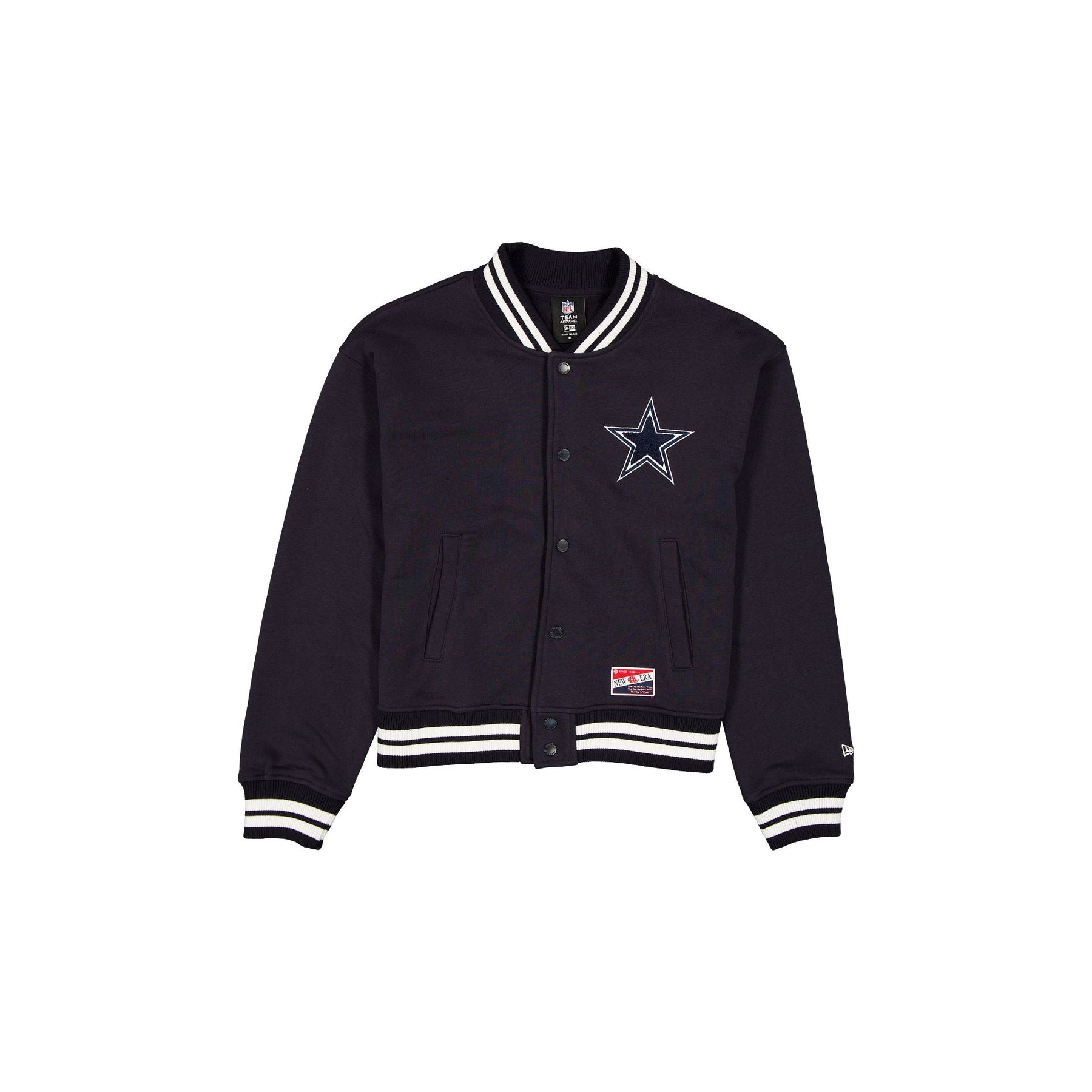 The Dallas Cowboys Throwback Women's Snap Front Jacket features a chenille Cowboys logo at the left chest a snap button closure and front pockets.