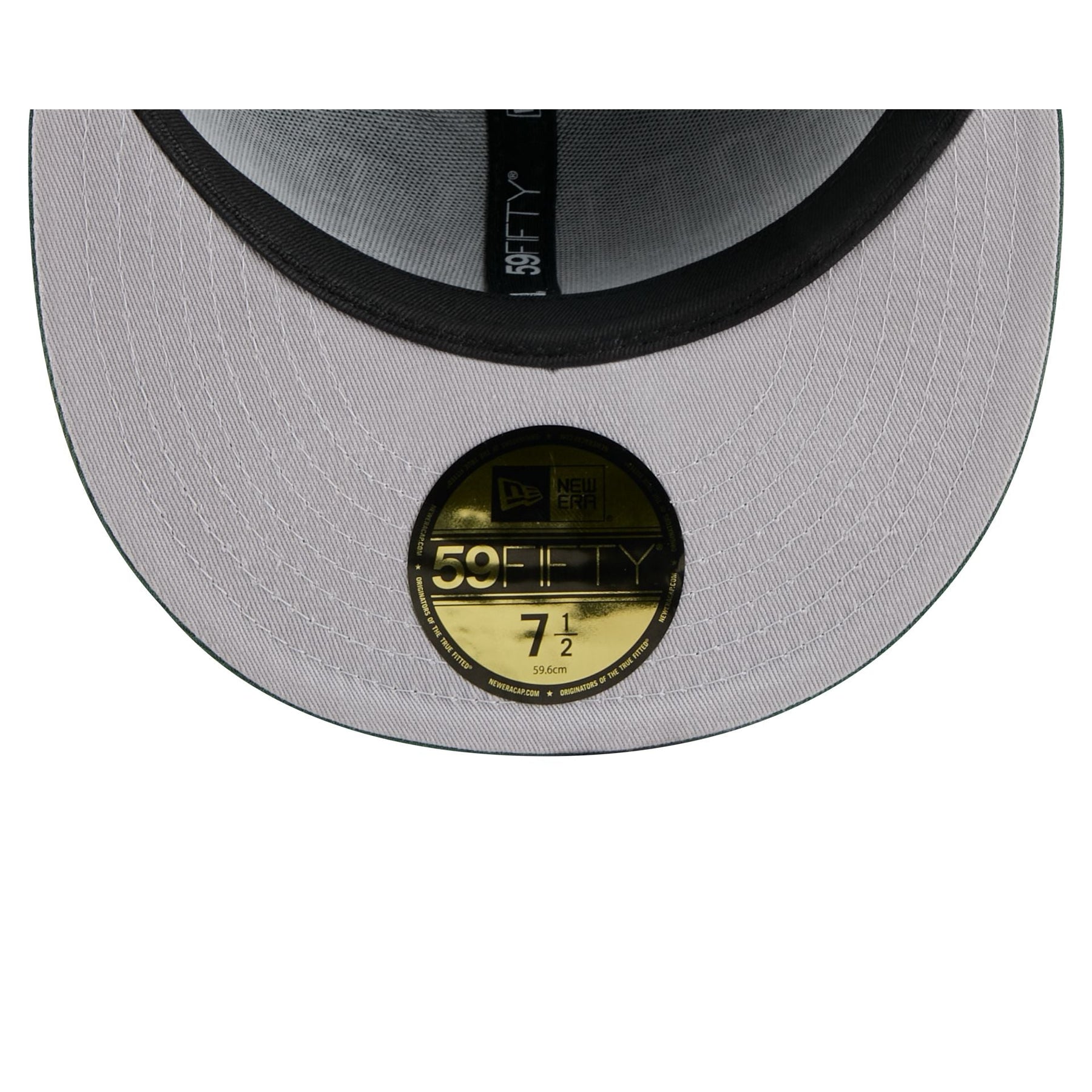 The Green Bay Packers Oversized 59FIFTY Fitted Cap features an embroidered Packers Historic oversized graphic at the front panels and visor. Additional details include a logo at the right-wear side, an NFL Shield logo at the rear, and a gray undervisor.