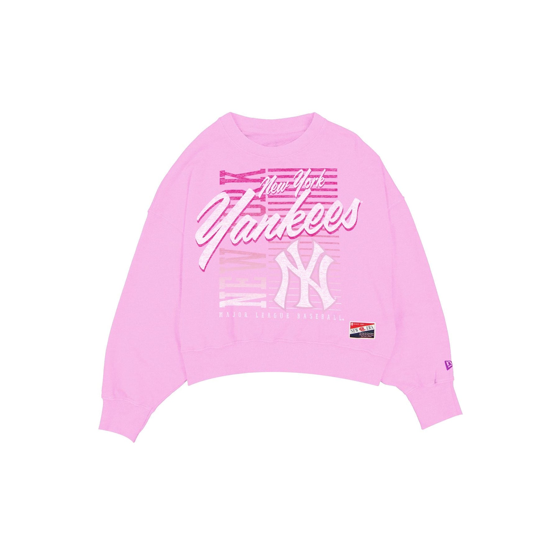 The New York Yankees Throwback Women's Washed Pink Crewneck features a screen-printed Yankees graphic at the front.