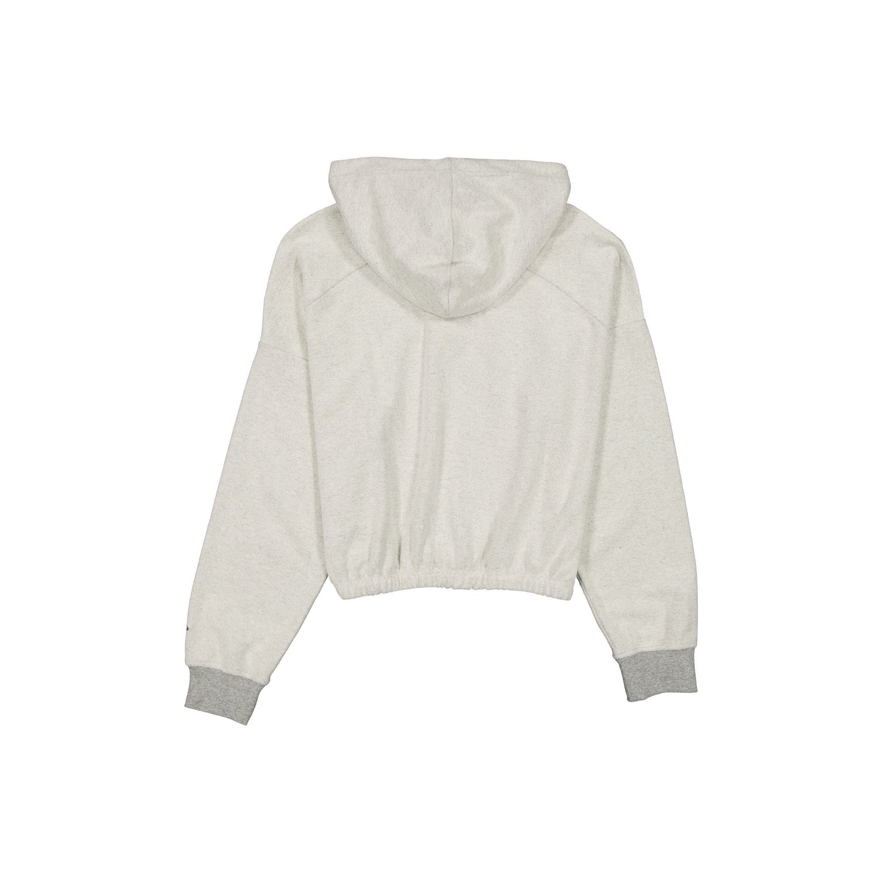 The Philadelphia 76ers Sport Night Heather Gray Women's Hoodie features a screen-printed 76ers wordmark at the front with an embroidered team logo at the left chest. Additional details include a quarter-zip closure and an elastic waistband.