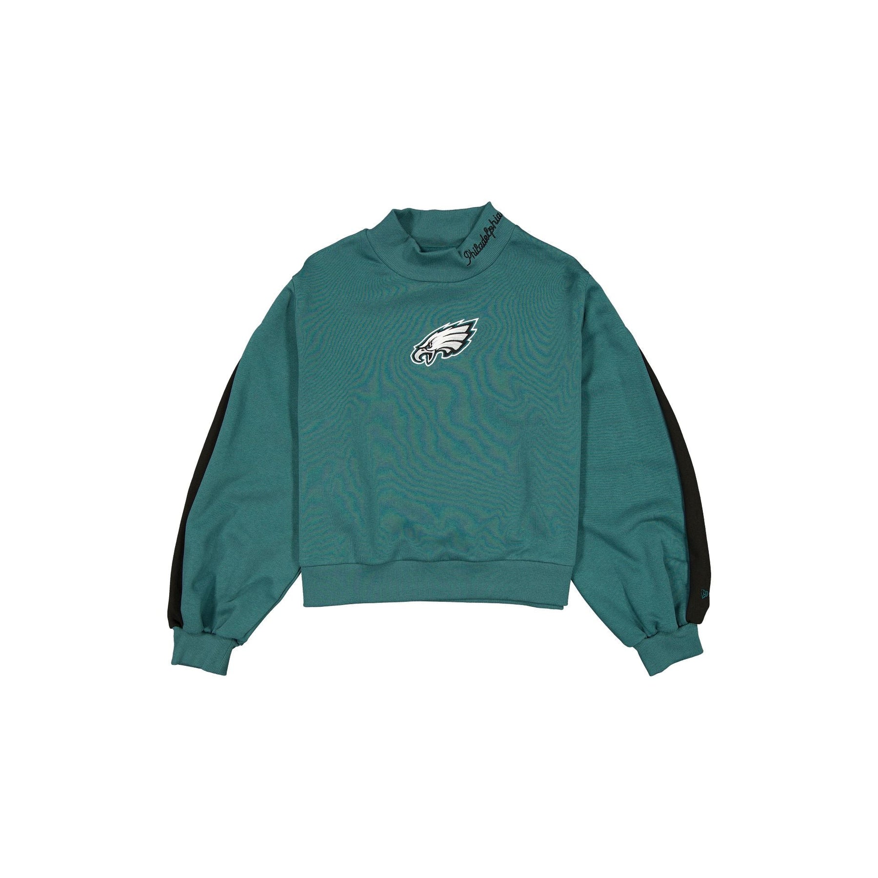 The Philadelphia Eagles Sport Night Women's Mockneck Sweatshirt features an embroidered Eagles logo at the front chest with a script wordmark at the neck and a wordmark at the rear.