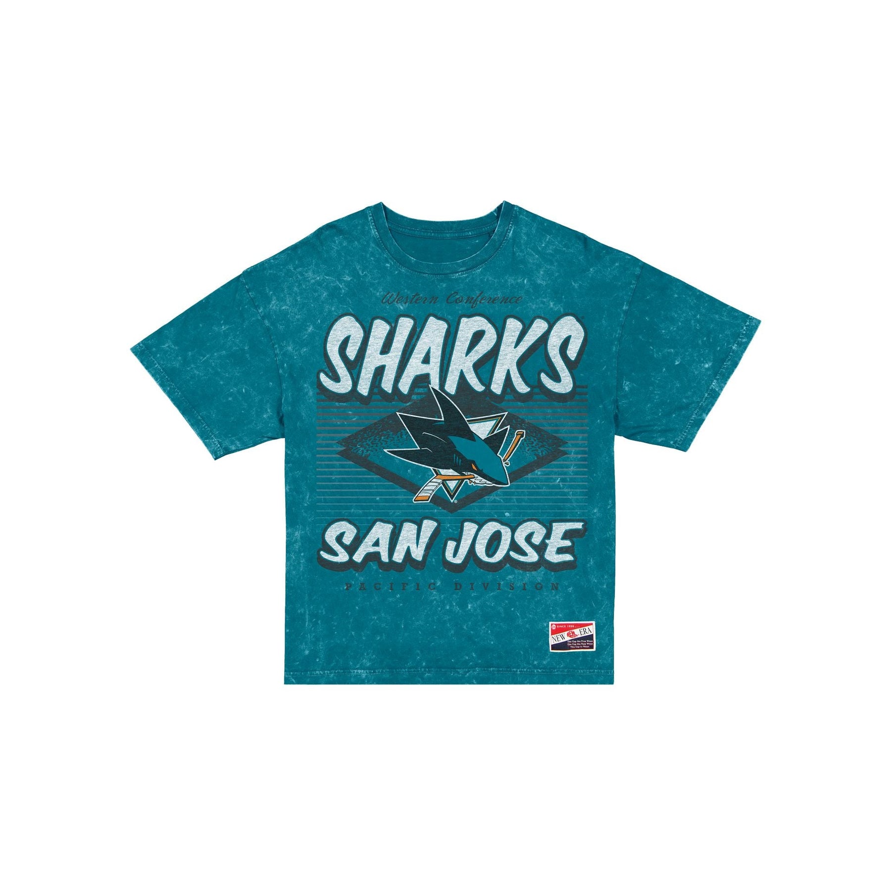 The San Jose Sharks Throwback Classic Women's T-Shirt features a screen-printed Sharks graphic at the front.